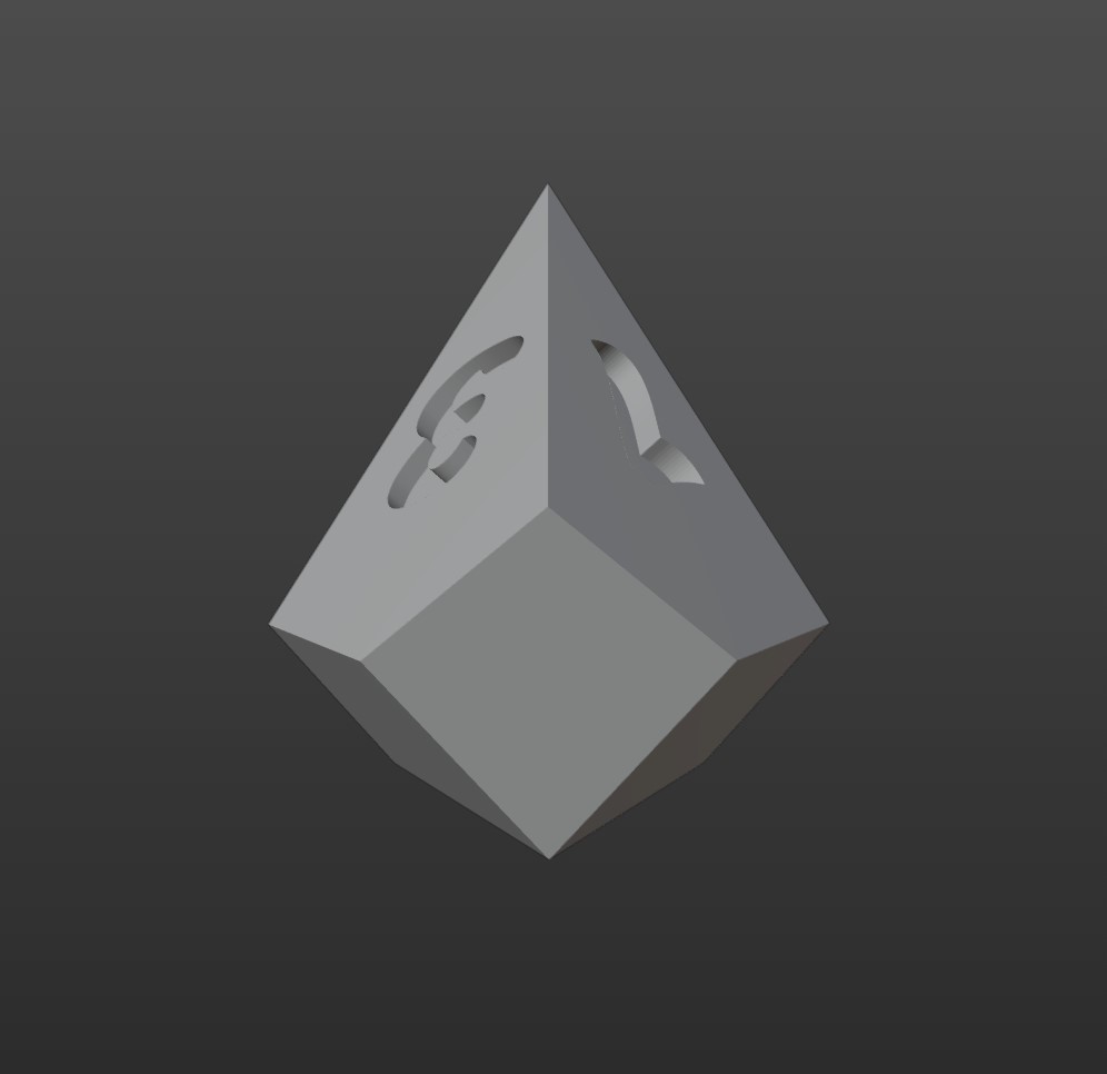 3. Alternate D4 "teardrop" shape - Twisting the small un-numbered faces 45° with respect to the numbered faces looks really cool (see attached image)